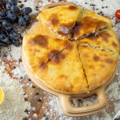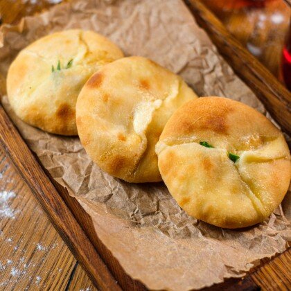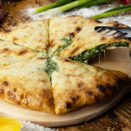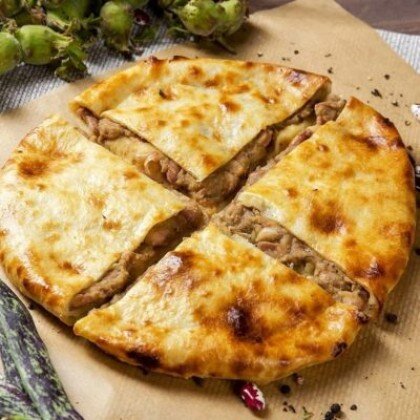 Хачапури с цыплёнком, грибами и копчёным сыром сулугуни