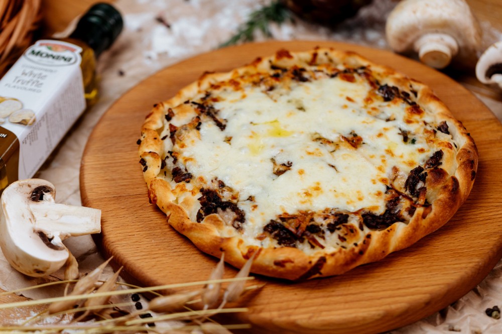 Хачапури с цыплёнком, грибами и копчёным сыром сулугуни