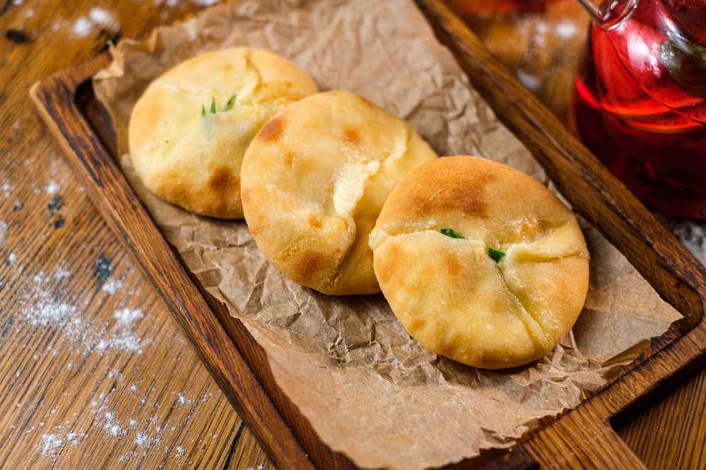 Хачапури с цыплёнком, грибами и копчёным сыром сулугуни