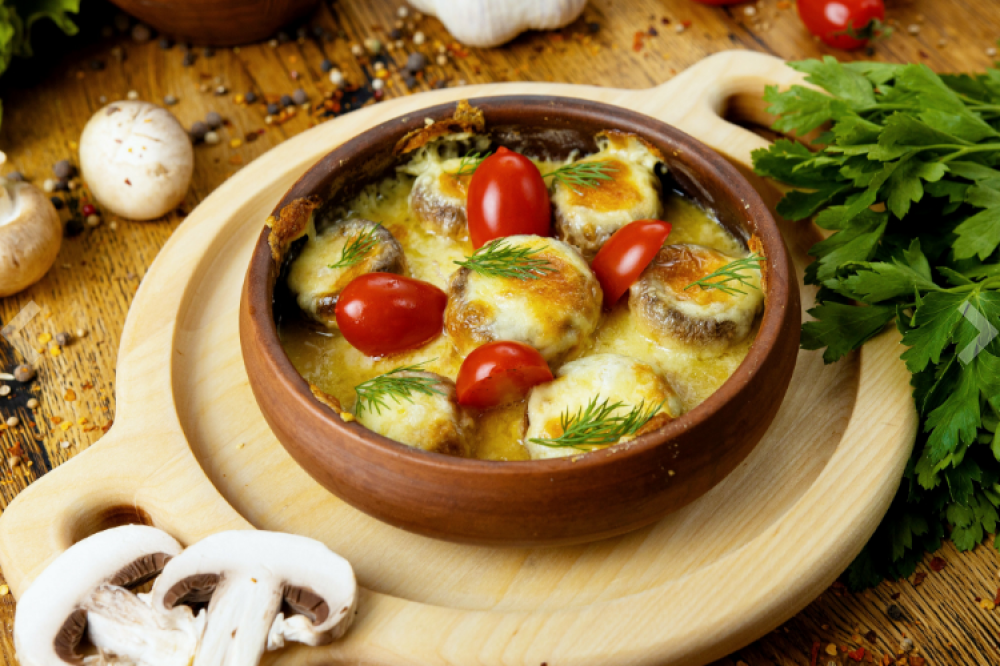Жаренный сыр сулугуни со свежими томатами на кеци