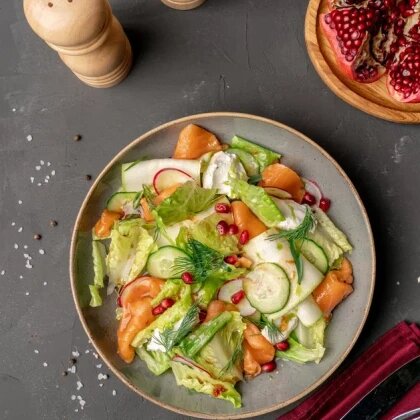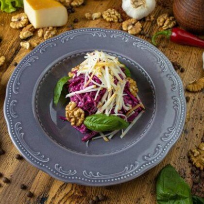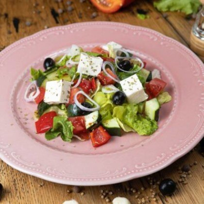 Салат по-гречески с муссом из брынзы и прованскими травами