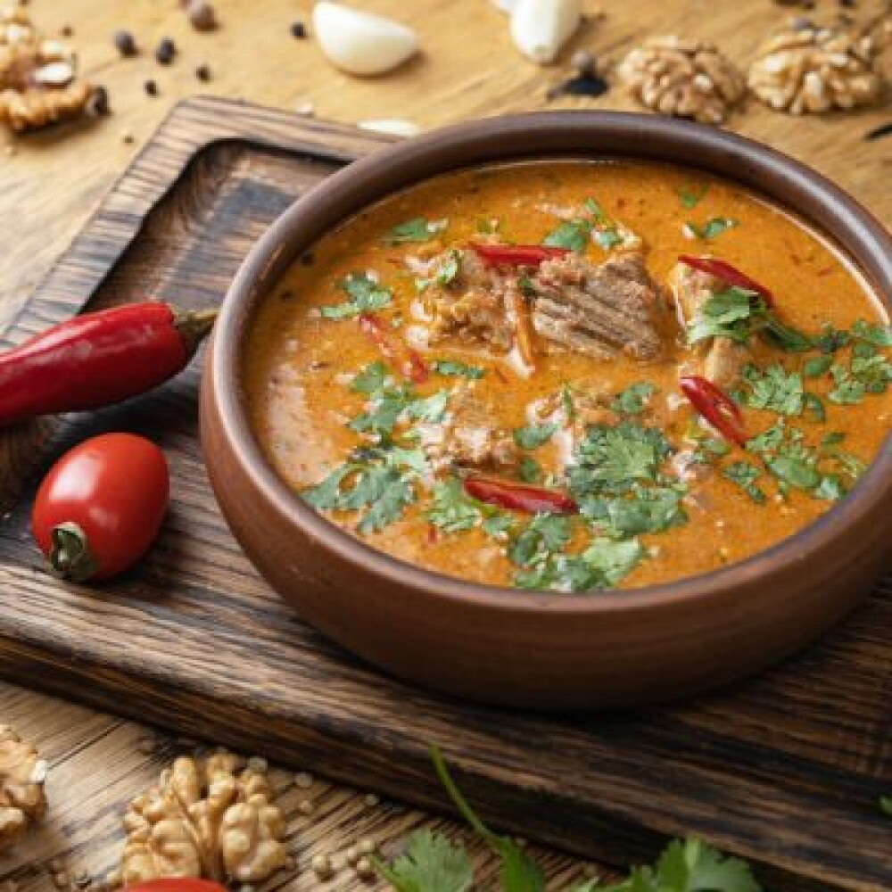 Традиционное мегрельское харчо из мяса птицы с орехами