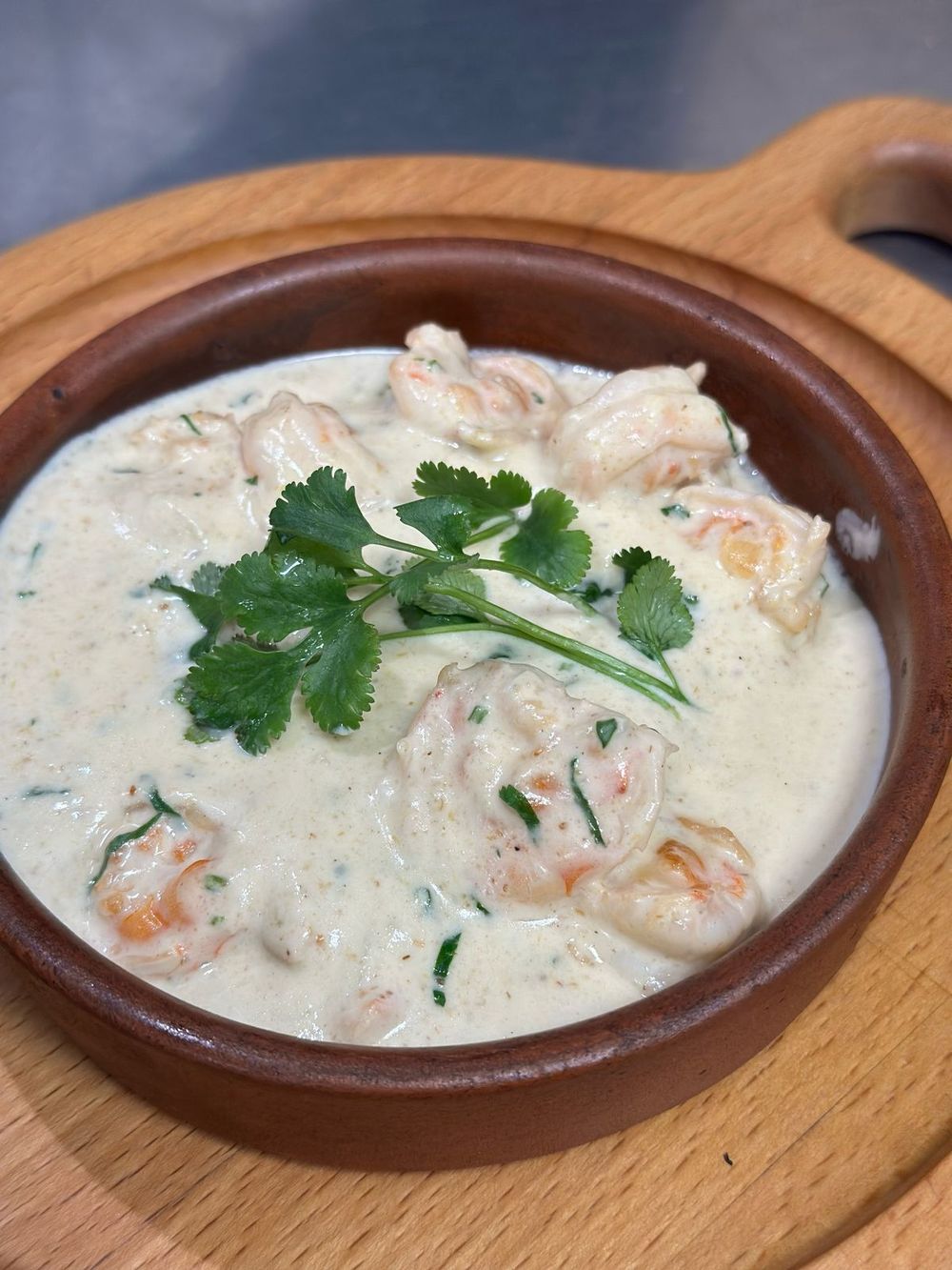 Тигровые креветки томленые в сливочно-чесночном соусе с грузинскими специями.