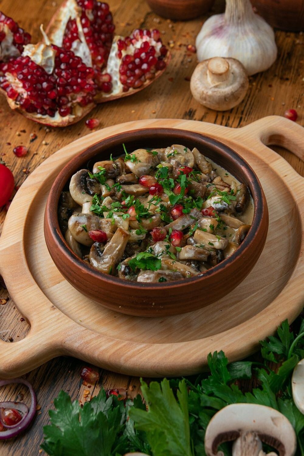 Шампиньоны запеченные с сыром сулугуни
