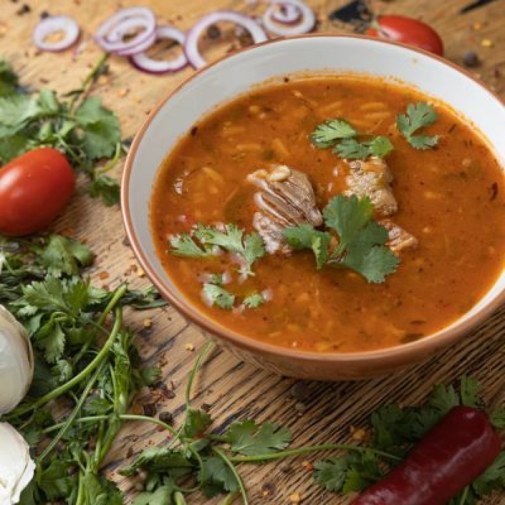 Наваристый грузинский суп с говядиной, рисом, зеленью и пряными кавказскими специями
